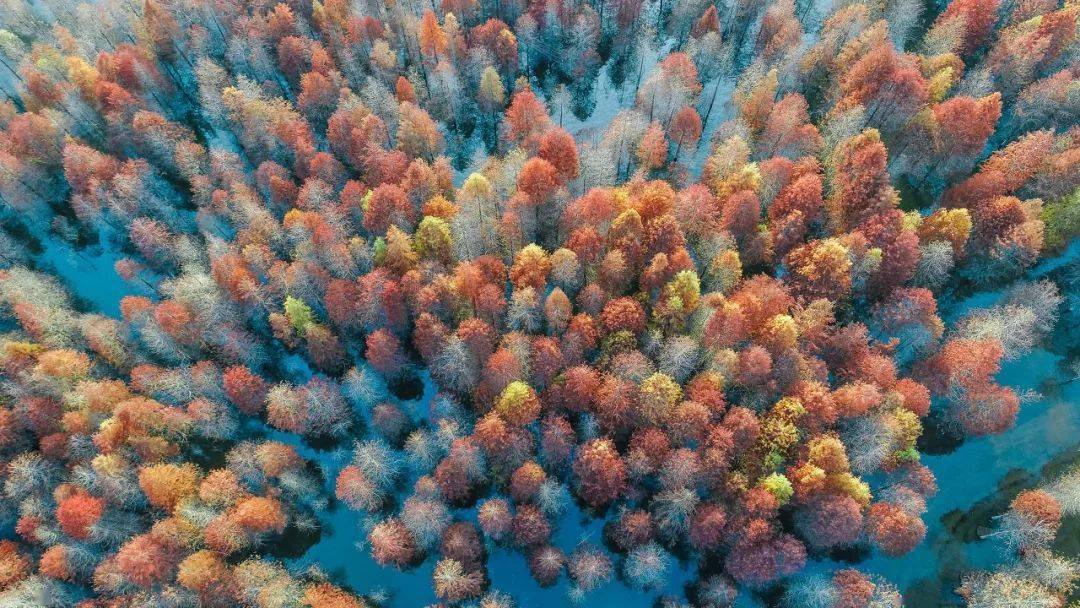 漫山遍野層林盡染,僅是不經(jīng)意間看一眼,已然心醉,仿佛一軸五彩繽紛的絢麗畫(huà)卷徐徐展開(kāi)。紅艷艷、金燦燦、綠茵茵......相互點(diǎn)綴,驚艷人間。