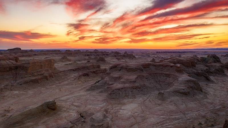 新疆烏爾禾風(fēng)城,位于準(zhǔn)噶爾盆地西北邊緣的佳木河下游烏爾禾礦區(qū),西南距克拉瑪依市100公里。該處有獨特的風(fēng)蝕地貌,形狀怪異,且四季狂風(fēng)不斷,被當(dāng)?shù)厝朔Q為“魔鬼城”。其實,這里是典型的雅丹地貌區(qū)域?!把诺ぁ笔蔷S吾爾語“陡壁的小丘”之意,是在干旱、大風(fēng)環(huán)境下形成的一種風(fēng)蝕地貌類型。唐瑜...