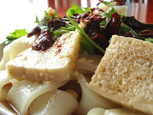 撈出的面筋可蒸一下,同涼皮子一起食用。食用時,將涼皮子切成細條、面筋切成薄片,放入盤中,再澆上辣椒油、醋、蒜末、醬油、芥末、芝麻醬等作料,五顏六色,其色悅目,味香誘人。盛夏,人們吃涼皮子既可消暑又可提神,其風(fēng)味絕非一般。
