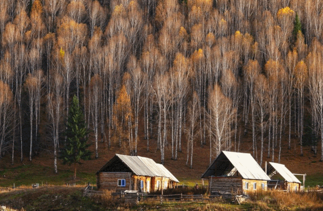 禾木村的房子全是原木搭成