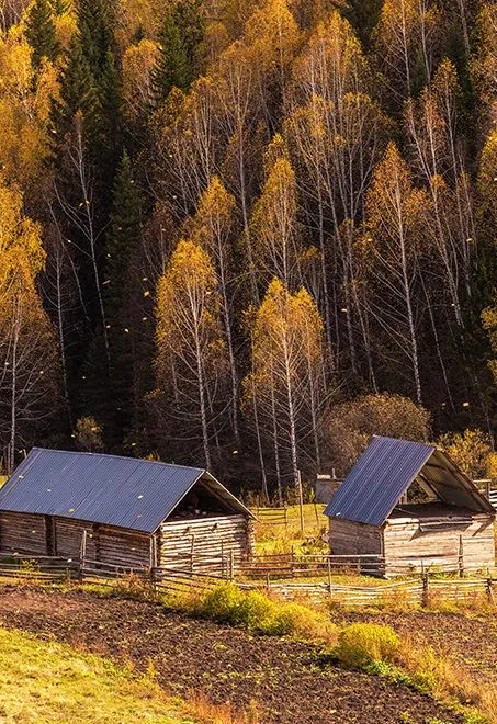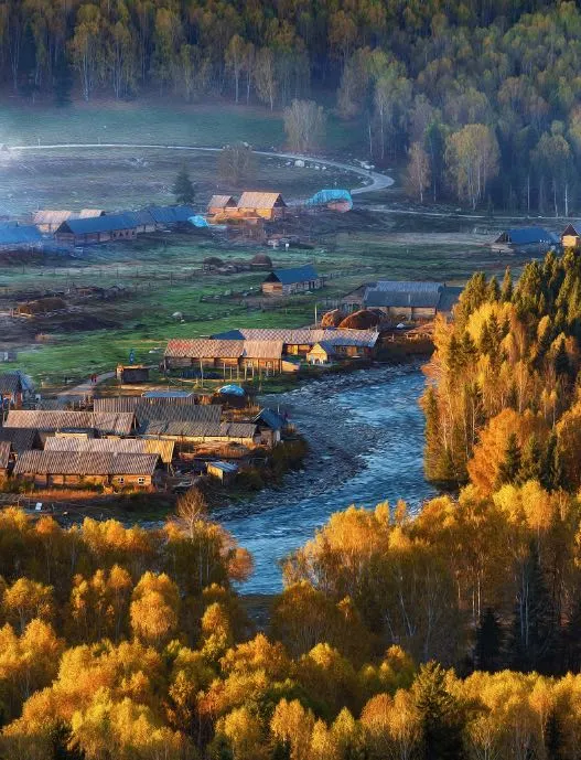 喀納斯河邊村莊林立 秋黃遍野
