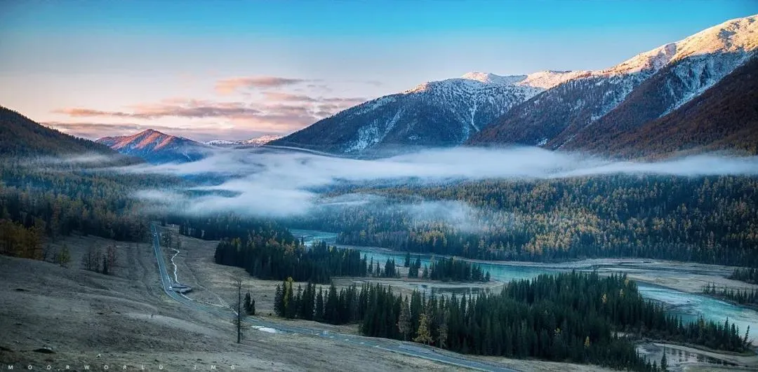 清晨的喀納斯薄霧籠罩 朝陽初升