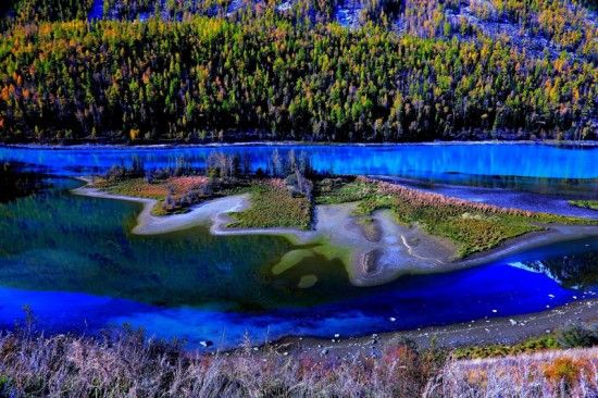 喀納斯湖外形呈月牙,湖區(qū)景觀主要有駝頸灣、變色湖、臥龍灣等;生長有哲羅鮭、細(xì)鱗鮭等珍稀魚類。