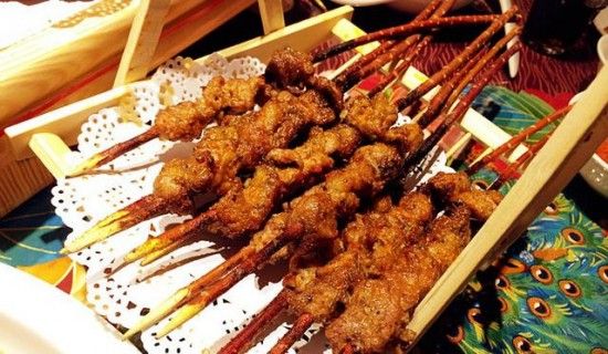 色澤醬黃油亮,肉質(zhì)鮮嫩軟脆,味道麻辣醇香,獨(dú)具特別風(fēng)味??删椭纬???狙蛉?,傳到全國各地,其中以新疆的最為正宗!其做法是:把羊肉切成小薄片,用綱鐵釬穿上,放在燃燒著的無煙煤上烤,然后撒上些辣面子、精鹽和孜然,數(shù)分鐘即成。其色呈焦黃,油亮,味道微辣,不膩不膻,嫩而可口。據(jù)說不愿吃羊肉的上海人,吃了新疆的烤羊肉串,也都會伸出大拇指說:“蠻好切(吃)格”。